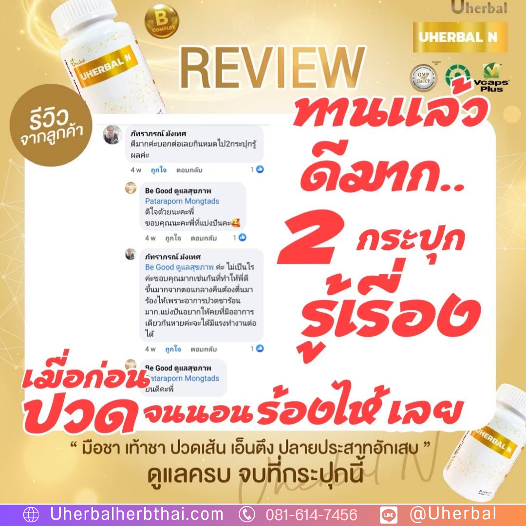 Uherbal N ยูเฮอร์เบิลเอ็น สมุนไพรดูแลเรื่องมือชาเท้าชา เหน็บชา ปวดหลัง ปวดเอว ปวดคอ ไหล่ ปวดข้อ ปวดกระดูก ปวดเมื่อย